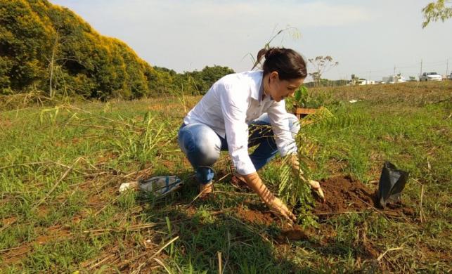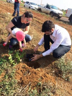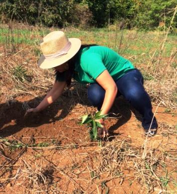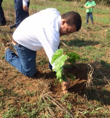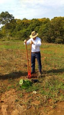 Os seus colaboradores plantaram mudas de árvores nativas do Cerrado, juntamente com a sua família, na Reserva Ambiental de Primavera do Leste.